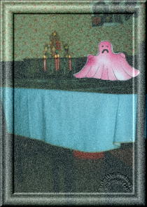 Um das kleine Gespenst auf andere Gedanken zu bringen, bot ich ihm etwas zu Essen und zu Trinken an. Gleichzeitig fiel mir dann aber auch wieder ein, dass Gespenster gar keine Nahrung zu sich nehmen und unmöglich Hunger haben können. Sie sind ja nur Wesen aus ganz feinem Nebellicht, Windhauch und Fantasie, die gar kein Verdauungssysthem haben.