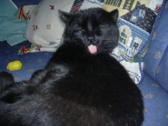 Kurz nach meinem Umzug nach Tamm, hatte ich mich ja entschlossen, auf Sofa und Sessel im Keller zu leben. Dort habe ich mich erst mal sicher gefühlt. Inzwischen bewohne ich aber doch lieber das Wohnzimmer und das Sofa gehört mir. Habe ja schließlich schnell gemerkt, dass hier keine Gefahr mehr droht für mich, niedliches, schwarzes Kerlchen.